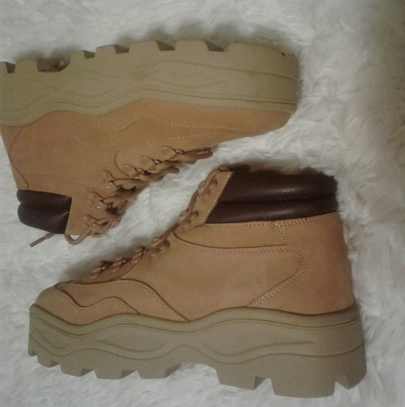 Nubuck leather with a platform lug sole, lace-up closure. NWOB