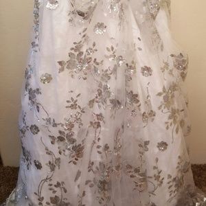 Sequin Organza White & Silver Lace Belly Dance Maxi Ballgown Skirt Party Dress Bridal