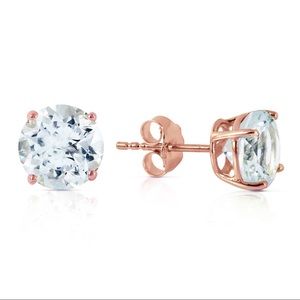 14K. GOLD STUD EARRING WITH NATURAL AQUAMARINES