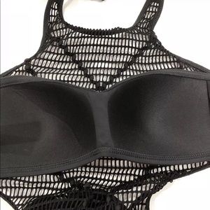 Kenneth Cole Wrapped in Love Swimsuit One Piece Black Mesh Cutout Sexy Monokini