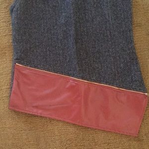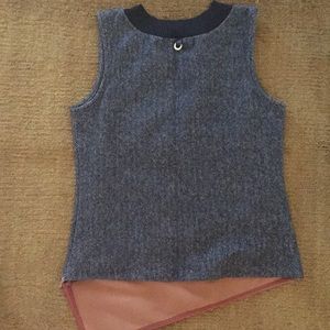 Ermanna vest top. Herringbone Print with vinyl zipper bottom. Soft fabric, looks wool but polyester blend. Beautiful neckline. Small markings on vinyl part, see pictures closely