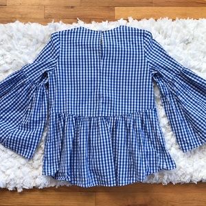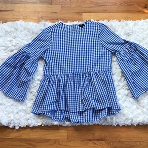 Who What Wear white and blue gingham peplum top with bell sleeves. Keyhole back with button closure. Size extra small, could fit size small. I great condition.