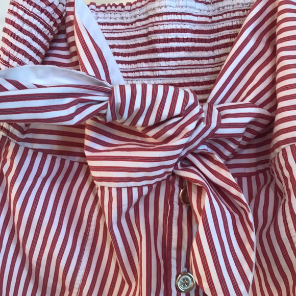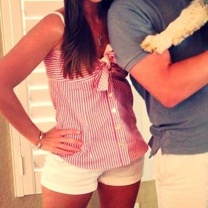 D&G red and white stripped top. Good buttons down the front. Top sections ties into a cute knot. Wears like a size small.