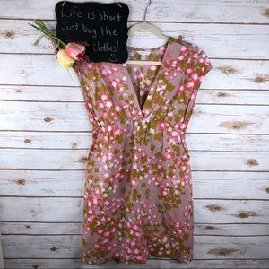 Garnet Hill taupe and pink floral vneck cotton sleeveless dress. Perfect summer dress! Very cute!! Excellent condition. Size 6P.