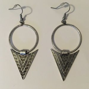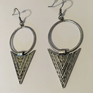 Silver geometric drop earrings with tribal engravings. Light weight.