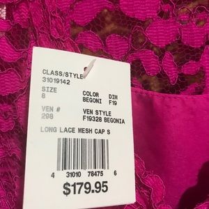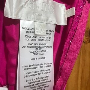 Beautiful pink lace dress with ribbon waste. Light and cool. Size 8. Like New.