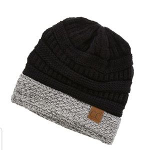 Super soft and a brand new style for this winter. Stay warm with this Two toned knit C.C Beanie in Black
