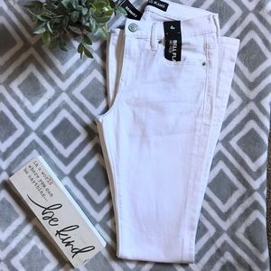 Super cute white jeans with a dramatic flare. Perfect for spring/summer! 98% cotton / 2% Spandex