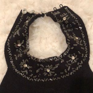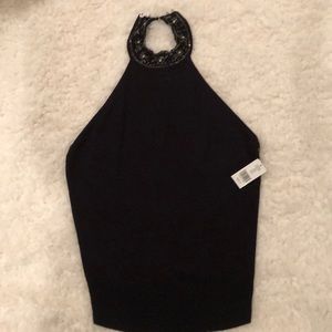 Black halter top. Diamond button closures and sequence around neck. Extra button. Brand new! S