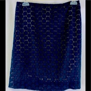 ANN TAYLOR LOFT zipper Eyelet Lace Skirt Navy Blue