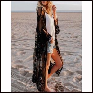 Add a little lace to your life! The lace fabrication of this black Embroidered Duster Cardigan will have you staring! The sheer look and scalloped edges of this layering piece give it the perfect boho edge. We love this with denim shorts and a bralette for summer! Even wear over a bathing suit!