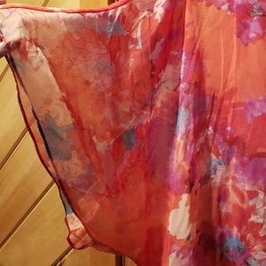 Cute spring/summer top. Girly flower top with loose flowy sleeves. Has a tie around the waist to make a cute bow and show off your figure.