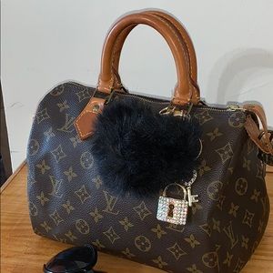 100% Authentic , classic monogram Louis Vuitton Speedy 25 , Beautiful classic monogram canvas , in pretty great condition as you see in pics . It has some blemishes on the beautiful patinaed leather , but really not noticeable unless stating directly at it . The monogram canvas is beautiful , will come with puffy & charm just looks cute on it ! Lock & 2 keys included , no dust bag 🥺, sorry but I do keep it in a different dust bag .Any Q’s just tag me 😍! Thanks