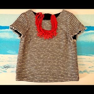 TALBOTS Shimmery Black/White Fringe Sleeve Top