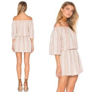 TULAROSA Fiona Off the Shoulder Embroidered Boho Mini Dress French Mauve