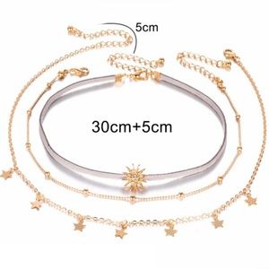 ✨ NEW Layered Bohemian Sun and Dainty Stars Choker Necklace Set