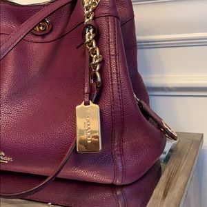 Aubergine supple leather bag with three large interior pockets with gold zipper and straps. Interior is clean. Worn four times. Great color! Lots of storage! PRICED TO SELL. CLOSING CLOSET. FINAL SALE.