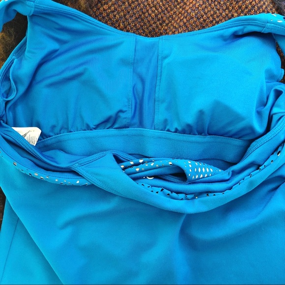 Great condition! No signs of wear on the fabric, no stains, or tears. Has removable pads in the built in bra.