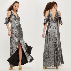 New TopShop Black Silver Metallic Ruffle Maxi Gown