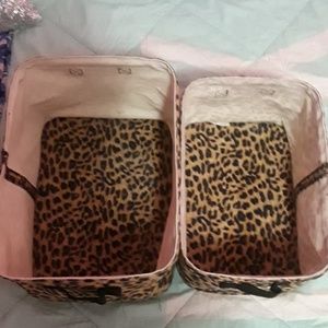 PINK Victoria's Secret Cheetah Bins.This is a set of a pair of super cute,and highly sought over Pink VS Cheetah bins.They are in used but good condition,they do have some staining as shown in the pictures. So please look at all the pictures before purchasing,other than that great condition,COMES AS SET,NOT SEPERATING,NO TRADES,PRICE FIRM,NO OFFERS,NO RETURNS,YOU PURCHASE AS IS,ALL SALES FINAL,I ONLY SALE TO TRUSTED BUYERS,I TAKE PICS & VIDEO OF THE WHOLE ENTIRE PACKING & SHIPPING PROCESS.