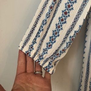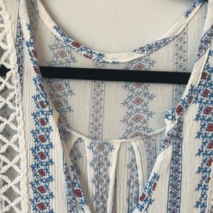 Lovely boho style tunic blouse with delicate eyelet details. Size medium. Cotton gauze polyester blend. High/low hemline. Tags removed but never worn. Falls 25” in front. 33” in back. 24” pit to pit. 17” sleeve length.