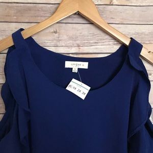 Umgee | royal blue ruffle cold shoulder top blouse