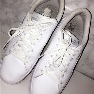 all white puma sneakers