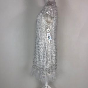 NWT Kay Unger White Sequin Feather Hem Dress