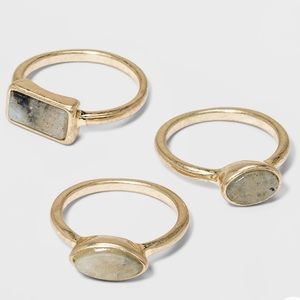 NWT semi precious Labradorite trio rings