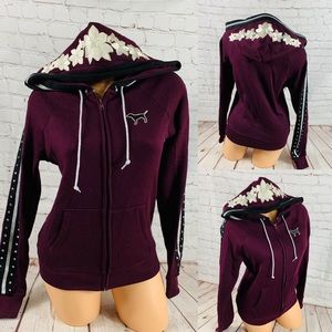 VS PINK Rhinestone BLING Full Zip Hoodie Sweatshirt