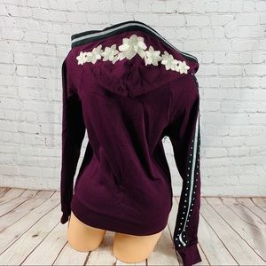 Victoria's Secret PINK Rhinestone BLING Campus embroidered Comfy Pullover Tunic Hoodie Black orchid
