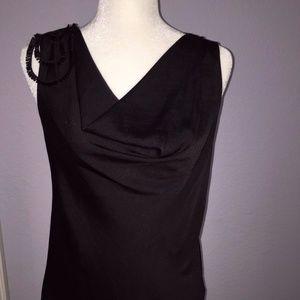 Elevate your wardrobe with this chic Banana Republic blouse. Featuring elegant, beaded embellishments on the shoulders, this sleeveless black blouse is perfect for both professional and casual settings. Made from high-quality polyester, it offers both comfort and style. Originally retailed at $60, now available at an incredible price!