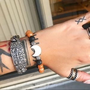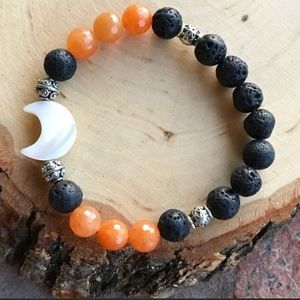 Women tangerine carnelian beaded bracelet / gemstone bracelet / boho bracelet / lava rock bracelet / silver bracelet / moon bracelet / mother of pearl bracelet / women gift / oil diffusing bracelet / oil diffuser bracelet / black beads / moon charm / orange beads / Fits 5.5 to 7.5 inch wrist. Handmade by me π. Genuine 8mm lava rock beads . Genuine mother of pearl moon charm & genuine tangerine carnelian beads . I ship fast! Any questions lmk ! π