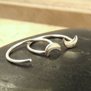 Tiny Silver Crescent Moon Hoop Earrings - Sleeper Hoops - Handcrafted NWT