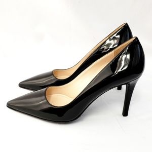 Rock 85, Nero, Pointy toe, black patent leather with stiletto heel. As with most high end designers, these do run small so be sure to size up one full size. Dust bag & box. Heel is 3.5"