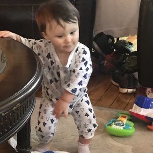 Cute blue and white sleeper for baby girl or boy. Soft with snaps for a easy change when baby is tired.