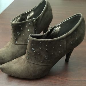 Good condition. Zips on side. Heels 4’. Diamond studs