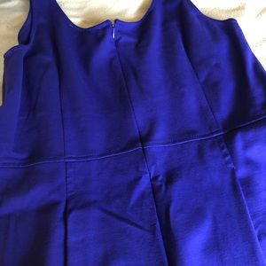 Worn once, form fitting up top, slightly pleated at waist. Dress hits at knee. It’s a true purple, but pics make it look blue. Smoke and pet free home