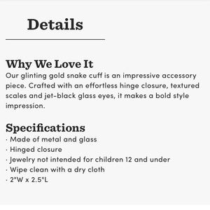 Gold Snake Hinged Cuff Bracelet β¨πβ¨
