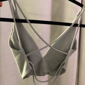 Grey skirt and top set. Low cut strappy top, comfy and thick enough to get away with not wearing a bra or anything. This outfit is sexy and perfect for a night out!