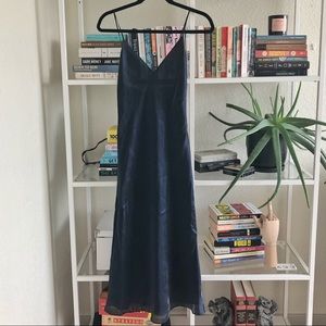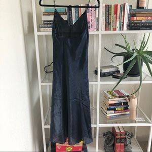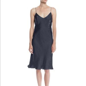 Beautifully cut slip dress with iridescent finish. It’s super flattering when on - these model pics don’t do it justice. Fully lined. I’m 5’8” and it falls a couple of inches below the knee.