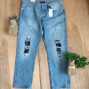 Levi’s 501 Cropped Tapered Leg, Mid Rise, Button Fly, Distressed Jeans