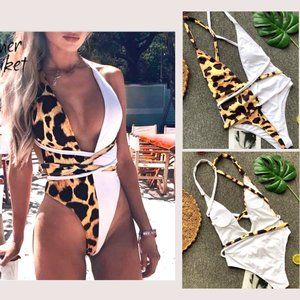⭐️🖤 La Farrah Sexy Leopard Deep V Swimsuit