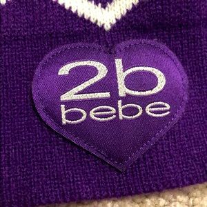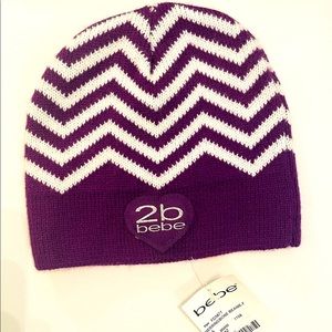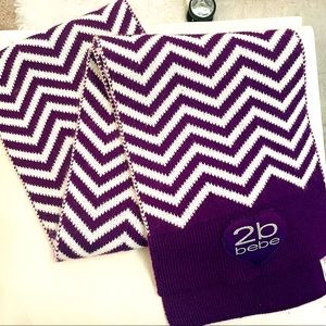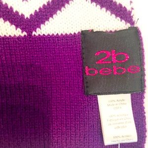 This is a brand new, never worn, never used, clean and in perfect condition Bebe 2b scarf, it is 100% acrylic & soft, herringbone design, purple and white. This auction comes with hat (skull cap) new with tags and never worn.