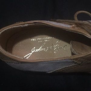 The Frye Company. Very clean, like new except for small (barley noticeable) stain on inside left heel.