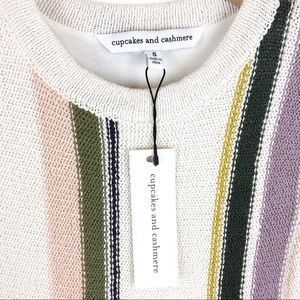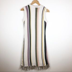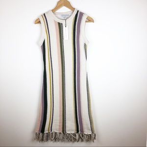 Cupcakes and Cashmere - Leandra Multicolored Striped Sweater Dress with fringe detailing.