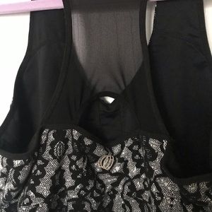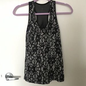 MARIKA Black & White Lace Print yoga workout tank size Large features cute & girly lace print. Work up a sweat in style & support!