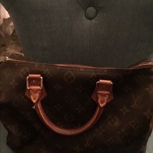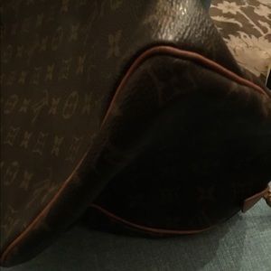 Exterior: Aging leather, signs of wear, tiny tear repaired by glue and barely visible