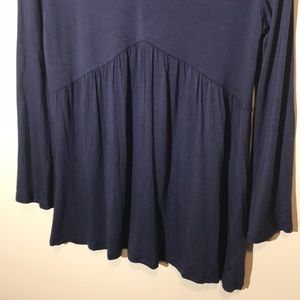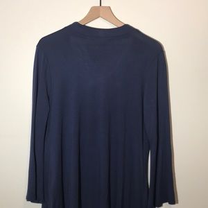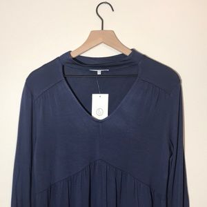 NWT Linda Matthews Knit Navy Top. Shibori Blue. Chicken neck top. Soft knit fabric. New with tags. Size small.