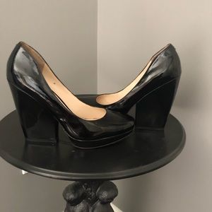 These preloved heels are so unique!!! The heel is so amazing and the are so comfortable. They are patent leather and are in amazing condition.